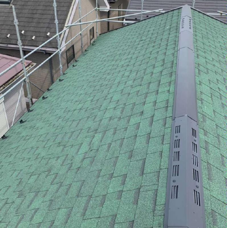 | 仕様 | 屋根材:オークリッジスーパー(シャトーグリーン) 下地:防水ルーフィング(粘着キング) |