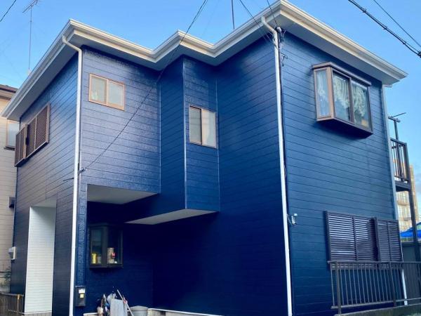 施工前はホワイト系の外壁でしたが、今回の塗装でお選びになられたカラーは発色の良いネイビーです。