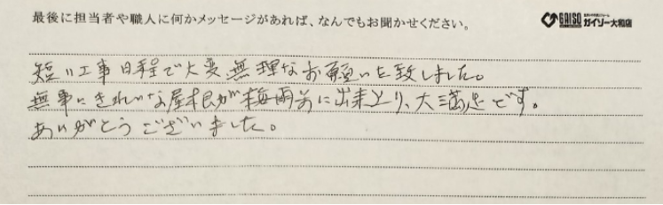 最後に担当者や職人に何かメッセージがあれば、なんでもお聞かせください。